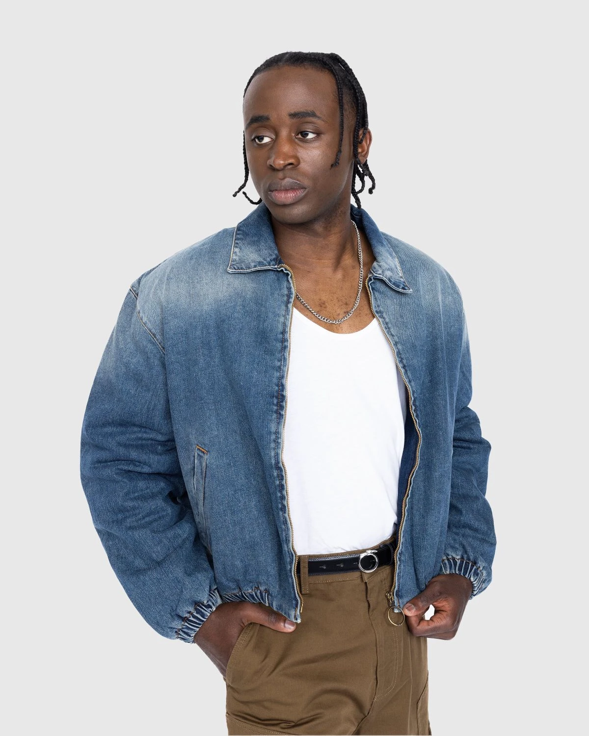The denim padded jacket is one of many standout pieces from Acne Studios’ latest collection. Crafted from a blend of organic and recycled cotton with a pigmented finish, the jacket is detailed with an elasticated hem, side seam pockets, front zip closure, and comes bearing the brand’s logo at the rear.