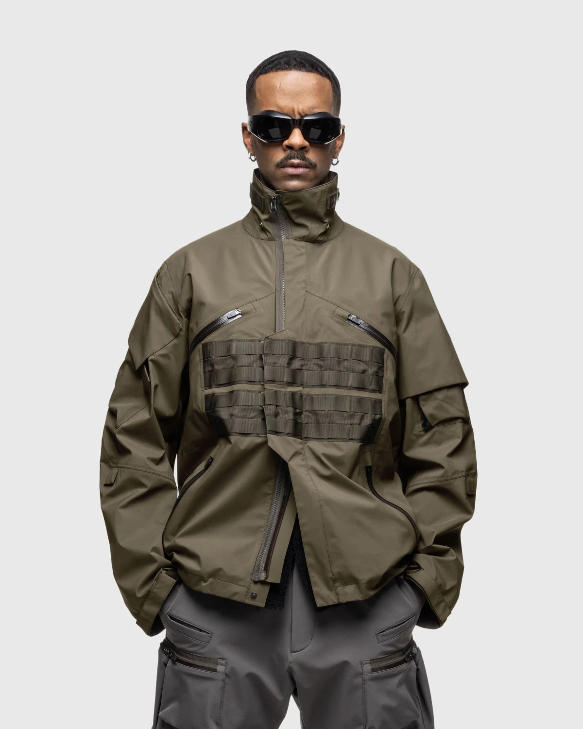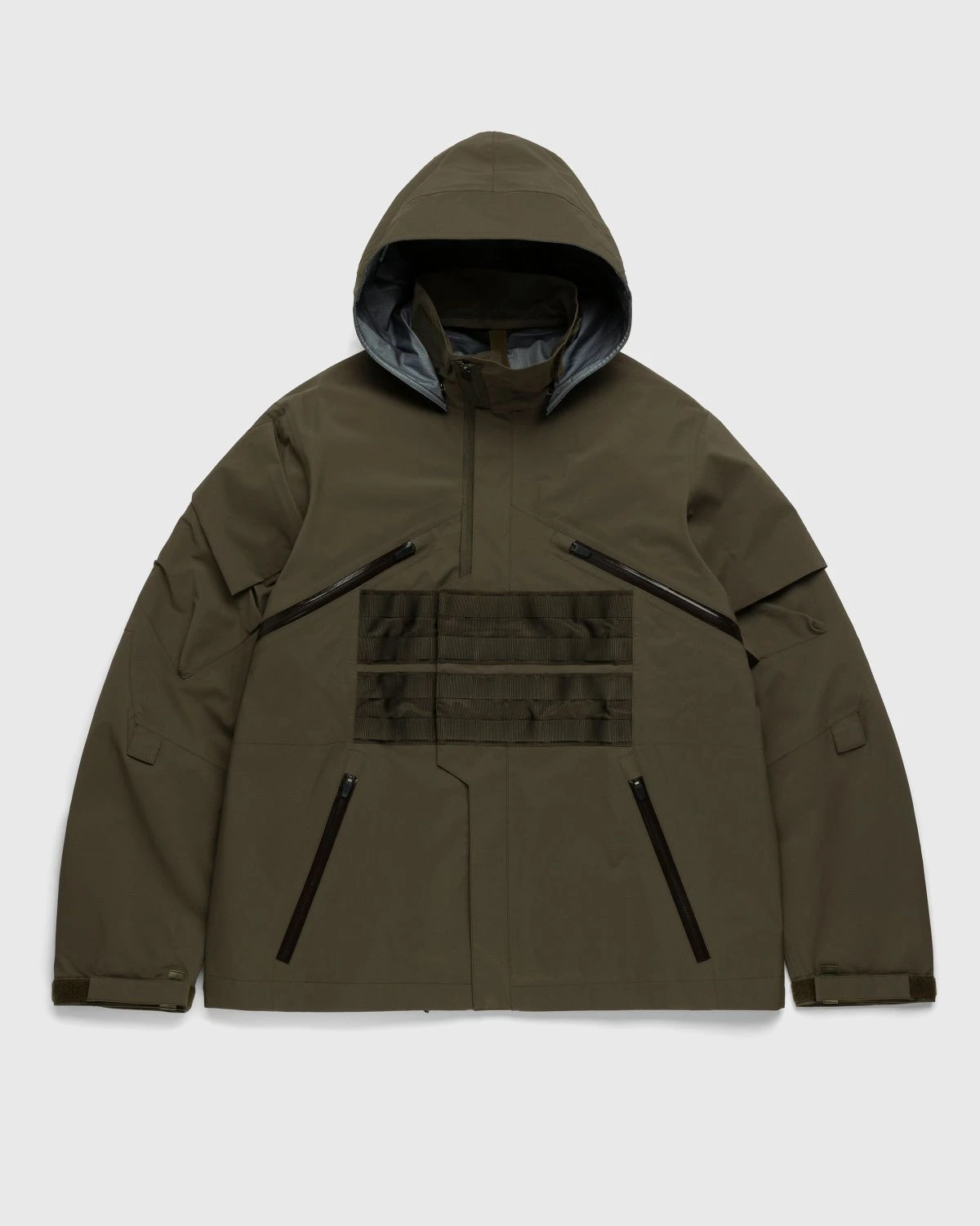 The J1WTS-GT is the physical rendering of Acronym in wearable form. A modular design, the jacket equally prioritizes function and aesthetics, for the first time ever remastered with TEC SYS webbing. The piece is constructed using Gore-Tex’s most breathable fabric technology to minimize moisture and enhance comfort in various conditions, simultaneously offering waterproof and windproof protection. Removable components including ForceLock, JacketSling, and a storm hood increase overall performance, as the style is outfitted with a series of external zip pockets for securely storing all your essential items.