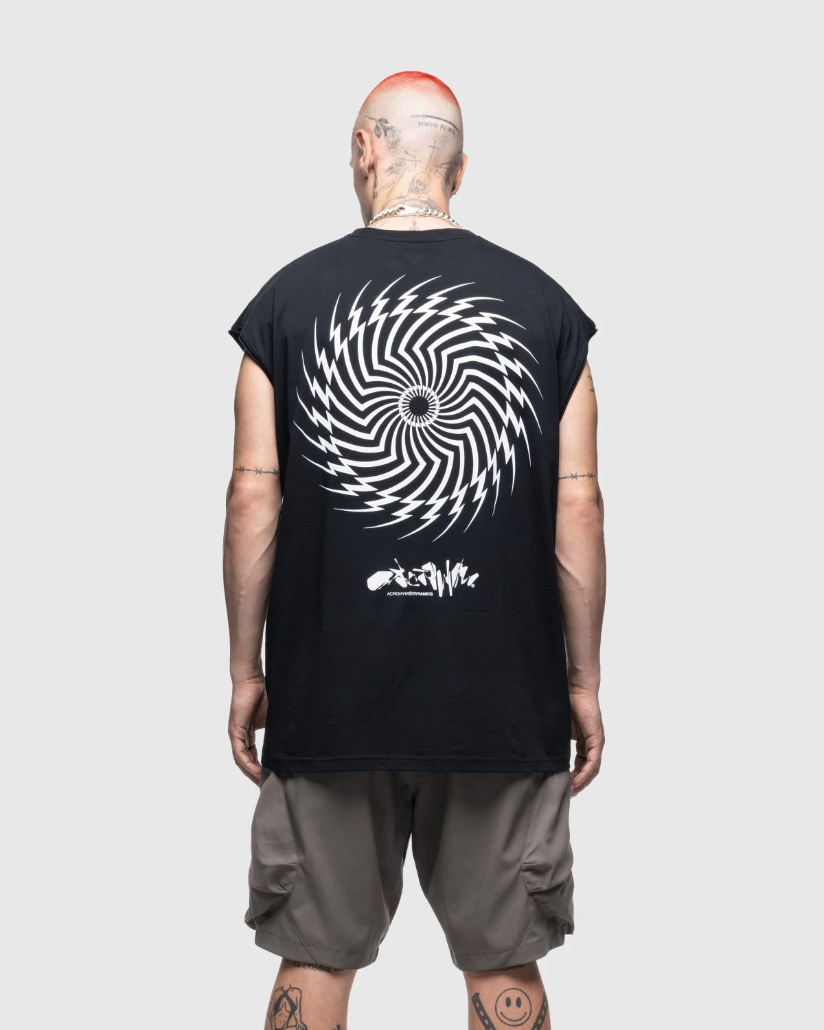 The S25-PR-C is a seasonal t-shirt style crafted from ultra-soft pima cotton. The tee is sleeveless and features a traditional rib knit crew neck, with silk screenprint detailing implemented on the front as well as the back. It is cut in an oversized fit for an extra comfortable and fashion-forward wear.