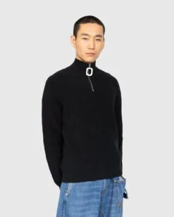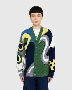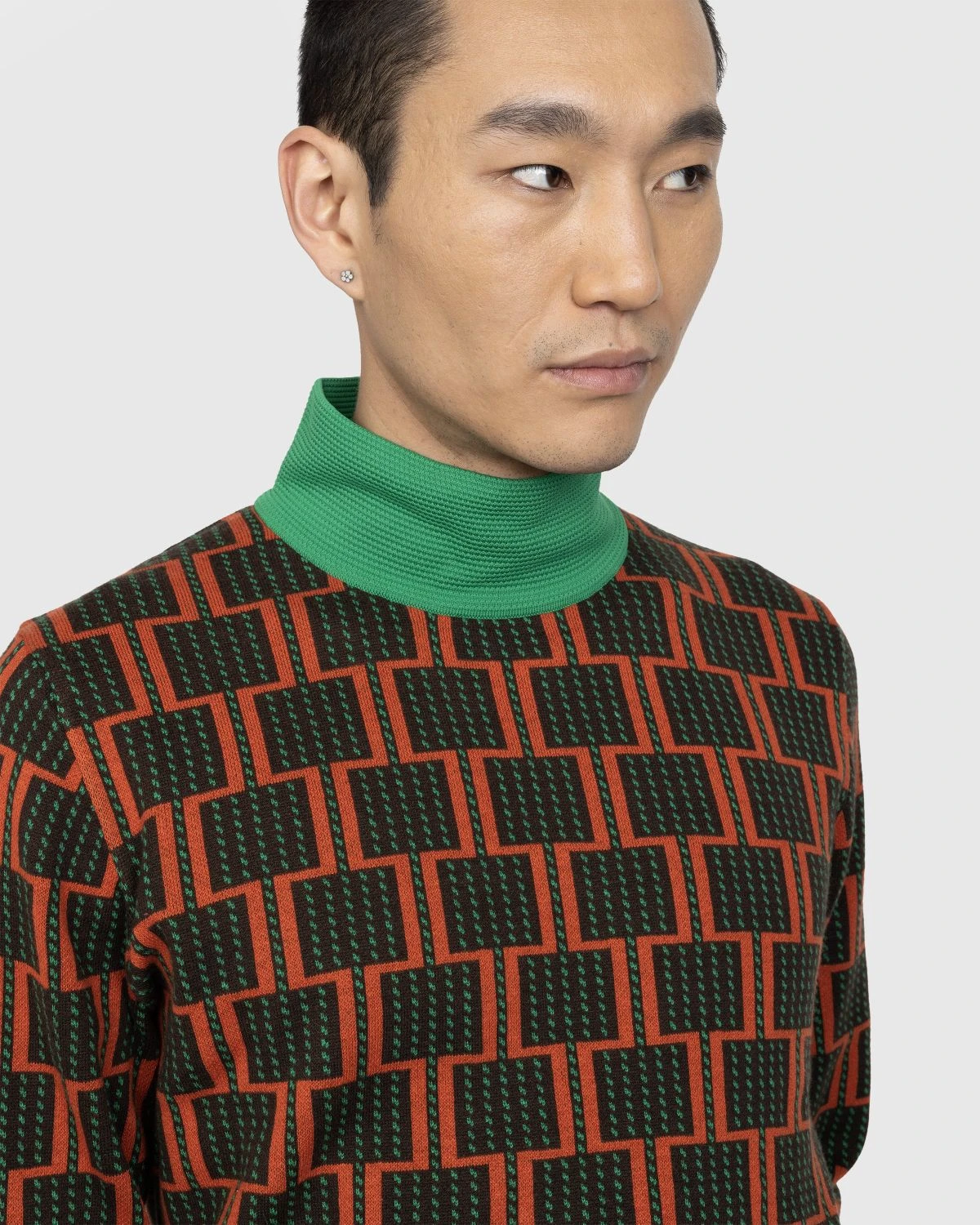 The multicolored Knit Turtleneck is featured in the latest collection from adidas and Wales Bonner. It draws immediate attention with an intricate all-over pattern and contrasting turtle neck. The garment is cut for a relaxed fit and embellished with embroidered adidas and Wales Bonner branding on the sleeves.