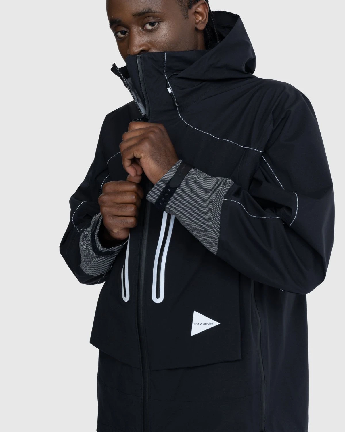 and wander’s Pertex Shield Rain Jacket is made using a three-layer water-repellent fabric that promises to keep you warm and dry in inclement weather. A cinched hood offers added protection from the elements, while reflector prints and stitches ensure you remain seen at all hours of the day. Two-way zips at the center front and sides make way for optimal breathability and allow you to make minor adjustments to the look and fit.