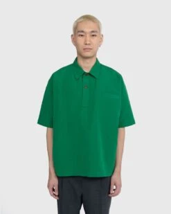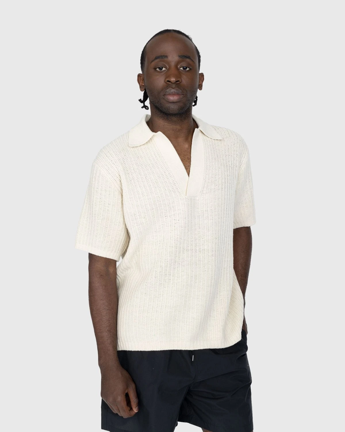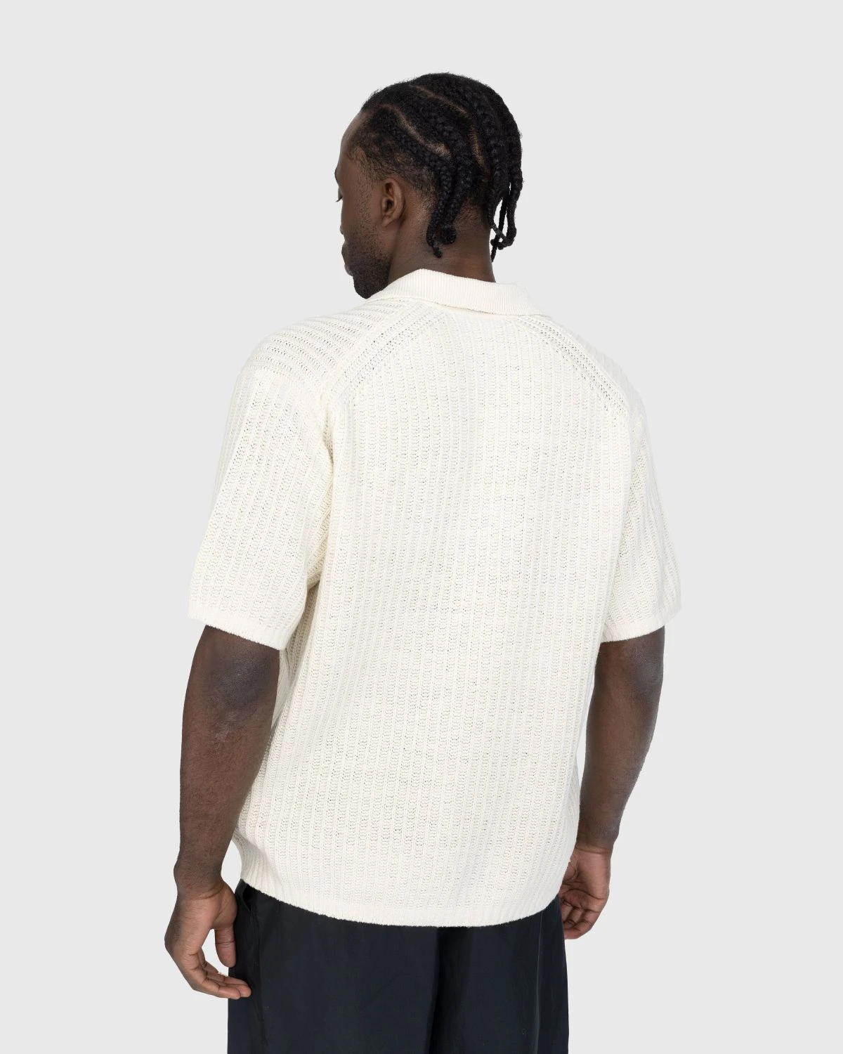 Auralee takes the classic polo to the next level with the Brushed Cotton Wool Rib Knit Skipper style. Cut for a relaxed fit to maximize comfort, the shirt is made from specially spun extra-long cotton and extra-fine count wool to create a soft, brushed texture and unique elasticity. It is a buttonless style with a V-neckline.