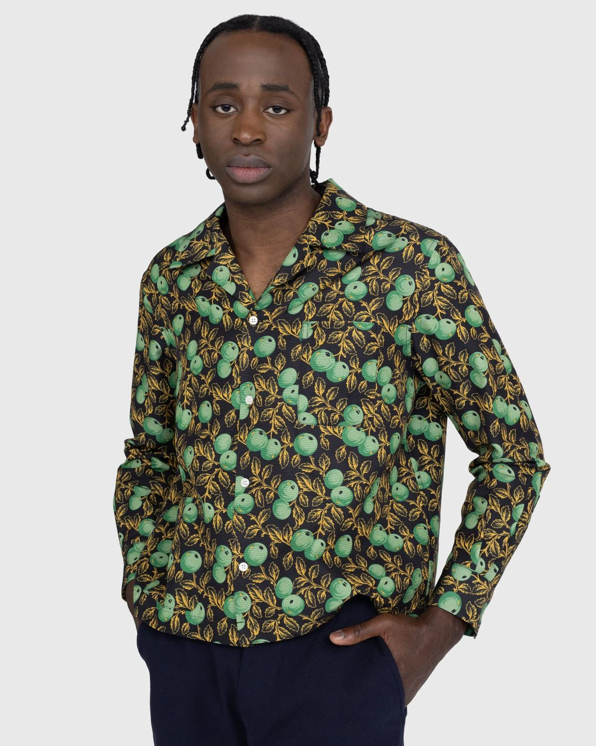 Drawing from a textile salesman’s swatch circa the 19th century, the Gooseberry Long-Sleeve features a pattern reproduced from a small swatch. This fun piece is executed in a lightweight cotton-silk blend, cut in a boxy, cropped fit for a timeless look. It features a spread collar, front button closure, a straight hem, and two pockets incorporated at the chest.