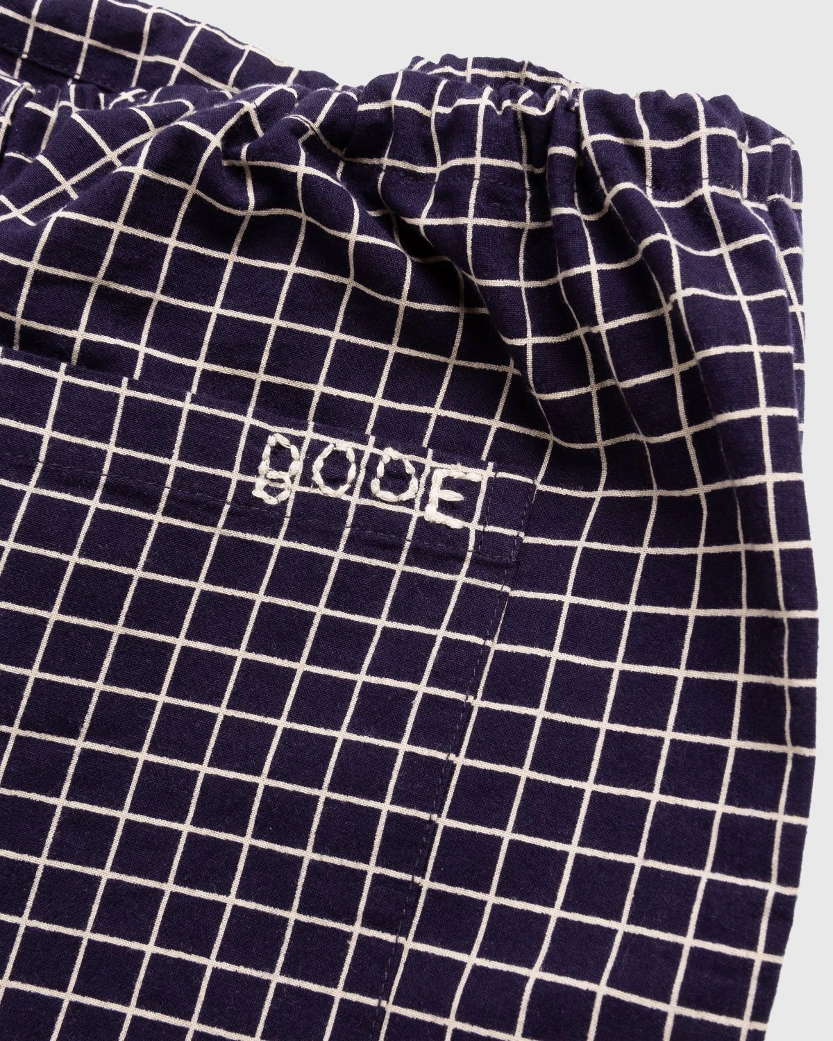 Inspired by midcentury men’s pajamas, the Midnight Grid Pant is made from deadstock rotary-printed fabric, a process which pushes ink through the fabric rather than stamping it on one side. The regular-fitting style features a drawstring waist, button fly, and back patch pockets, while being detailed with a hand-embroidered Bode logo on the back.