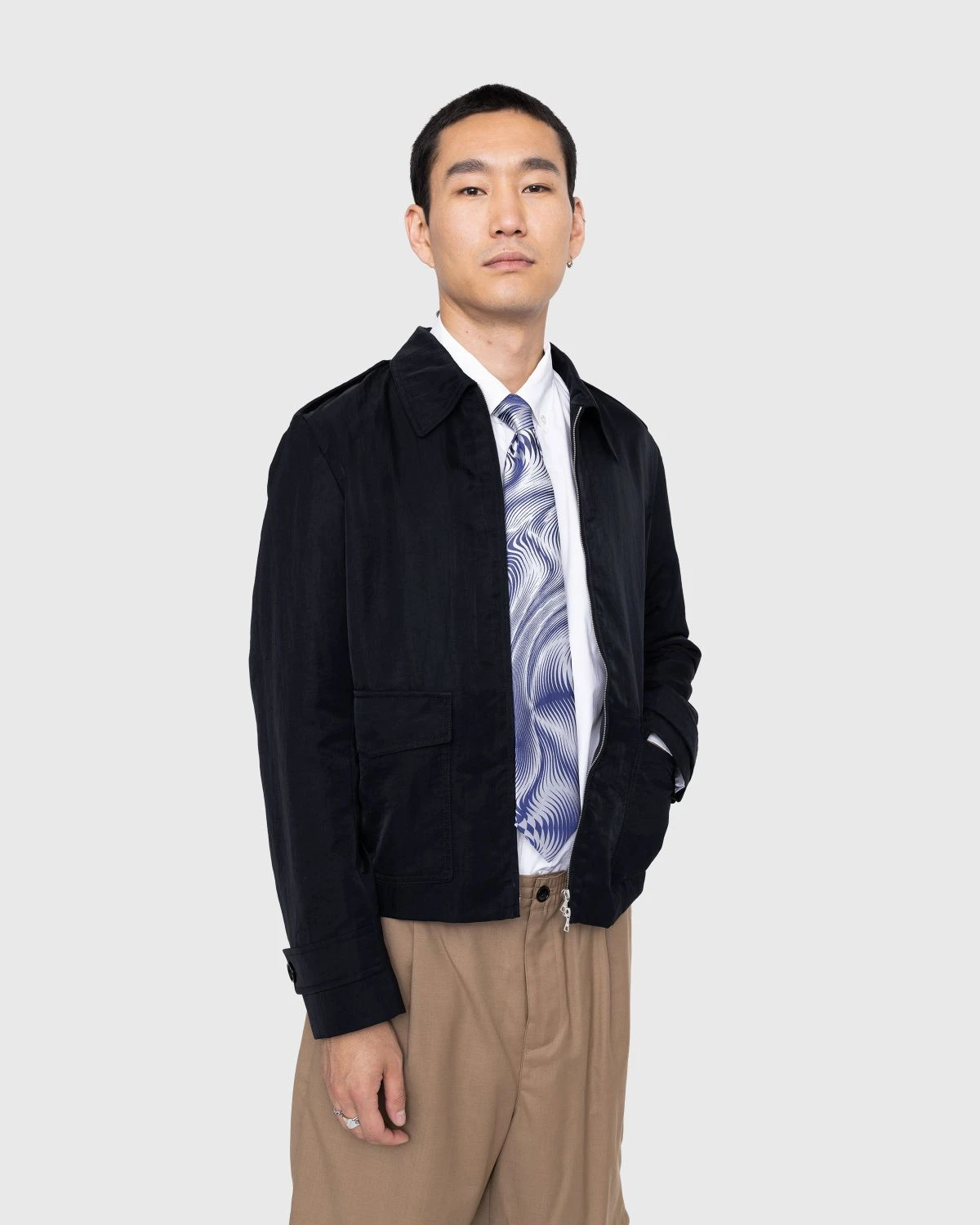 The Vallow is Dries van Noten’s high fashion take on the classic coaches jacket. Cut for a relaxed fit, the stealthy outerwear style is produced in a polyester fabric with a noticeable sheen that doubles as a water-repellent shell. The monochrome jacket is detailed with two-way front zip closure for versatility, interior and side pockets, and adjustable velcro tabs on the sleeves to style to your liking.