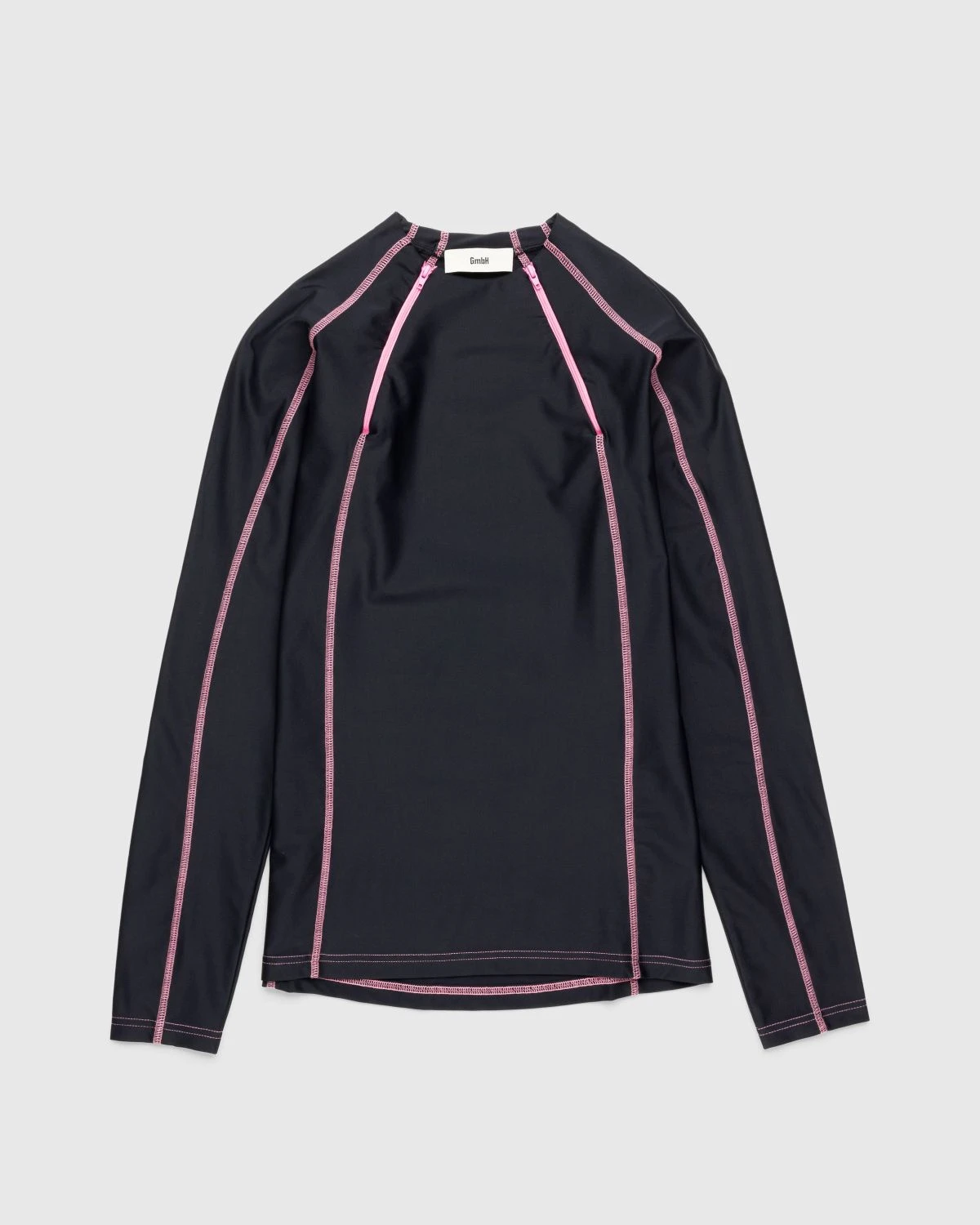 78% recycled nylon. 22% elastane. Overlock stitching. Mock neck collar. Twin zippered vents at the front. Contrasting hardware. Unisex.