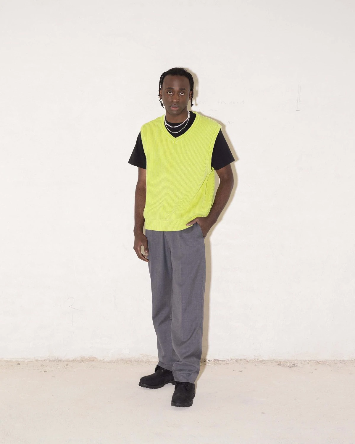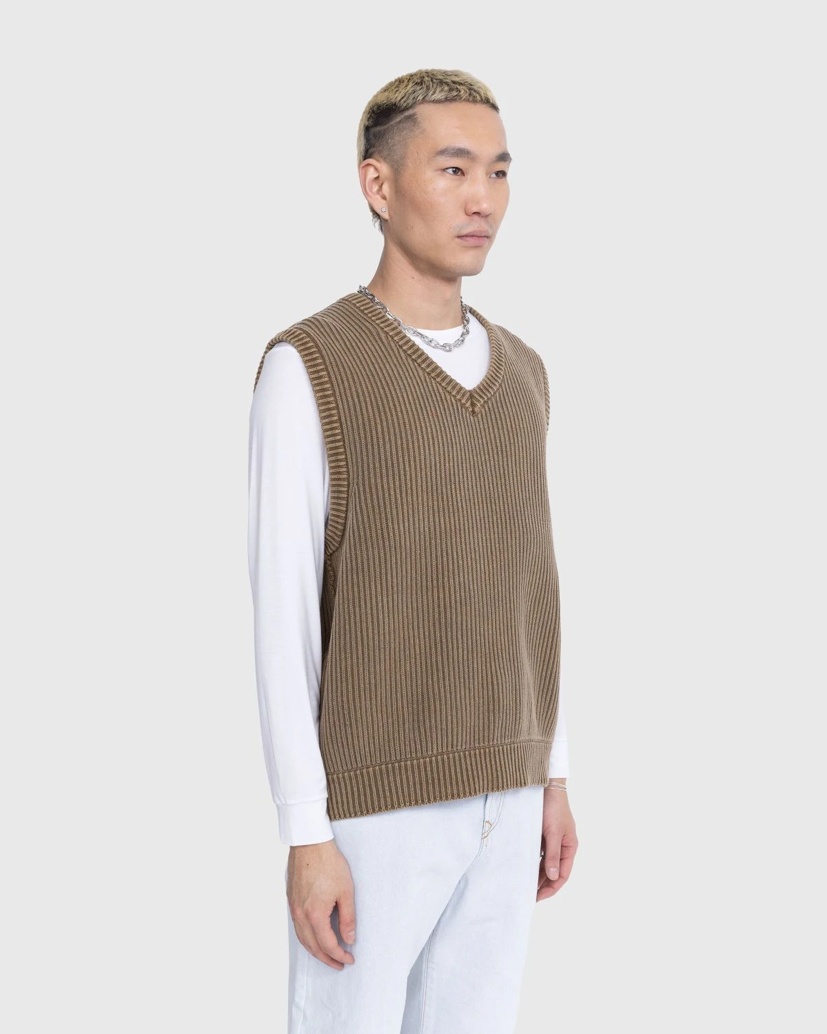 Thanks to its pigment dye and wash, this sweater vest has the vintage-looking finish of an already worn-in piece of knitwear. The uneven pigmentation draws attention to its construction and the textured, ribbed knit. Cut with a loose fit and V-shaped neckline, the sweater vest features external seams that give it a more pronounced shape. Crafted from 100% cotton, there is also a matching sweater for days when it’s too cold to go sleeveless.