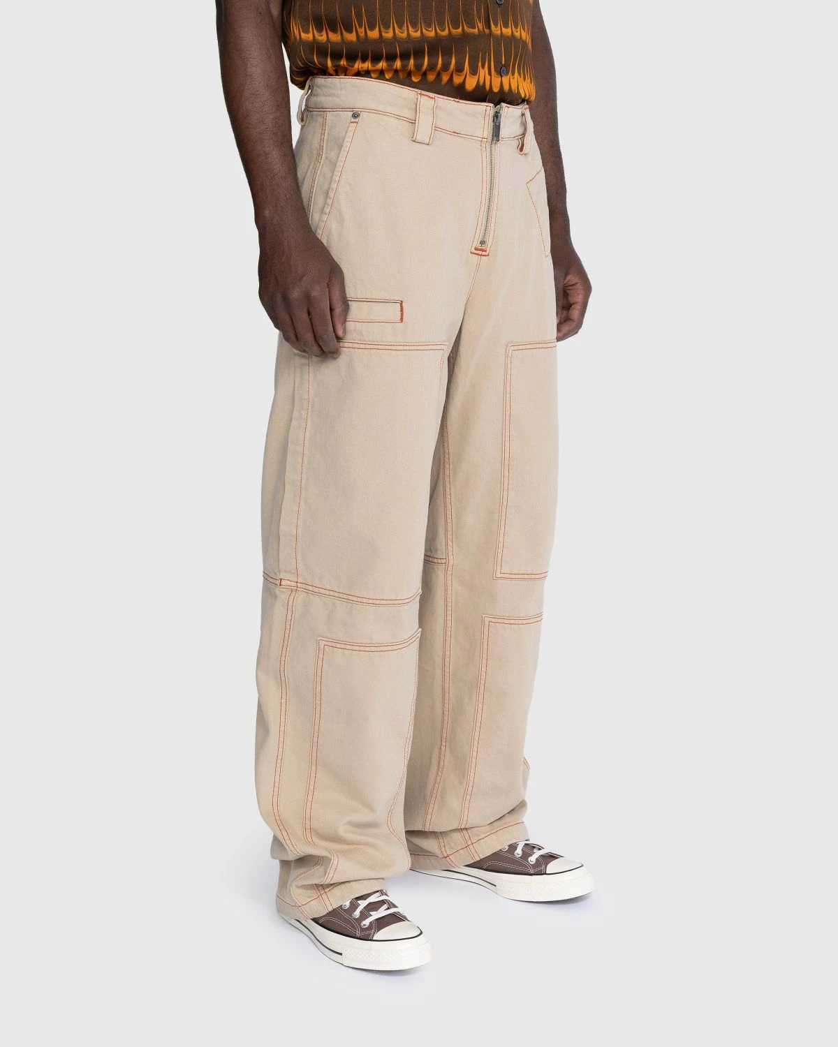 Le De Nimes Cargo is a contemporary, high-fashion update to the classic cargo pant. Produced in garment-dyed denim, the loose-fitting pair features metal rivets and contrasting workwear stitching. The exposed zip closure extends up to the top of the waist, while multiple workwear pockets are implemented throughout to define the silhouette. The style is finished with Jacquemus’ paper logo denim patch applied to the back of the waist.