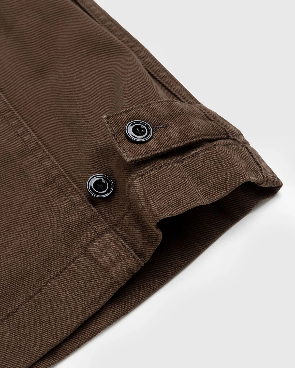 Main fabric is 100% cotton. Garment-dyed. Unlined cut. French placket. Corozo buttons. Square hem. Pleated back. Flat-fell seams. Adjustable cuffs. Front welt pockets. Unisex.