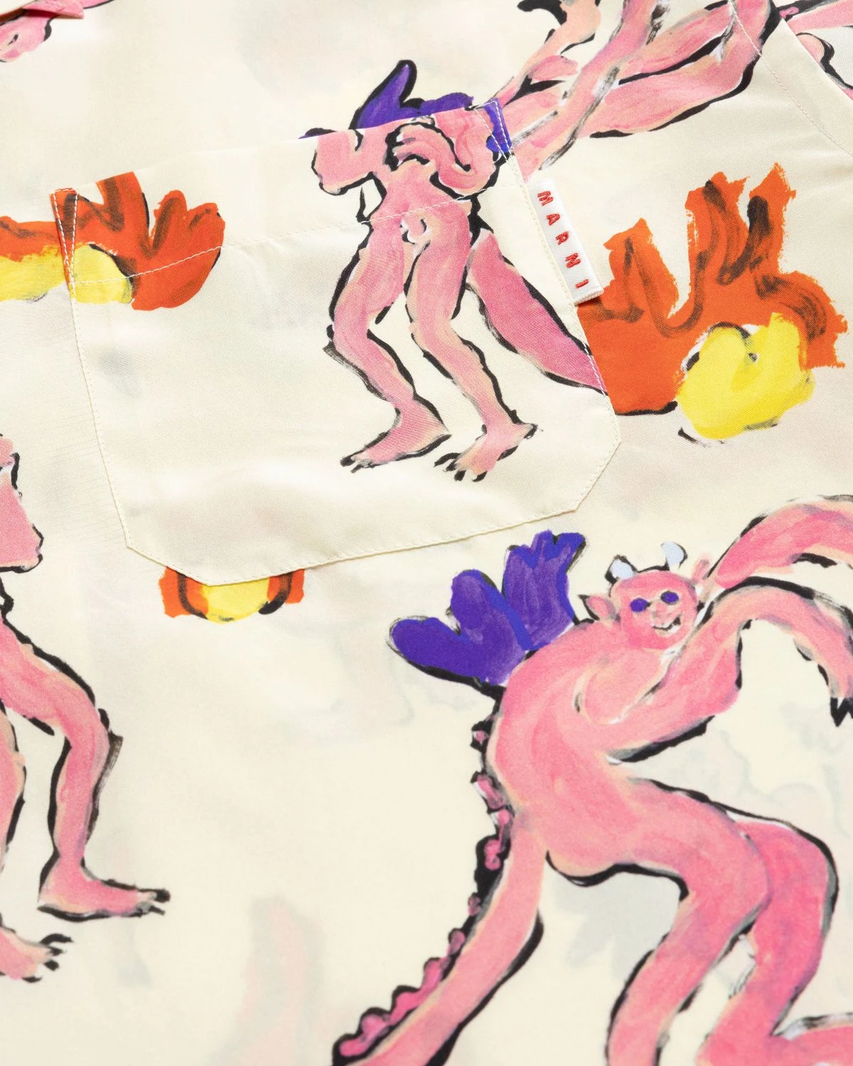 Playful short-sleeve button-ups are a summer staple. This new style from Marni is designed to inject vibrant energy into your warm weather outfits, as it showcases a fun all-over graphic pattern. Crafted from lightweight silk, the shirt is made with an open spread collar, center front button closure, and a straight hem. It is cut in a relaxed, boxy fit and finished with a small logo flag incorporated onto the chest pocket.