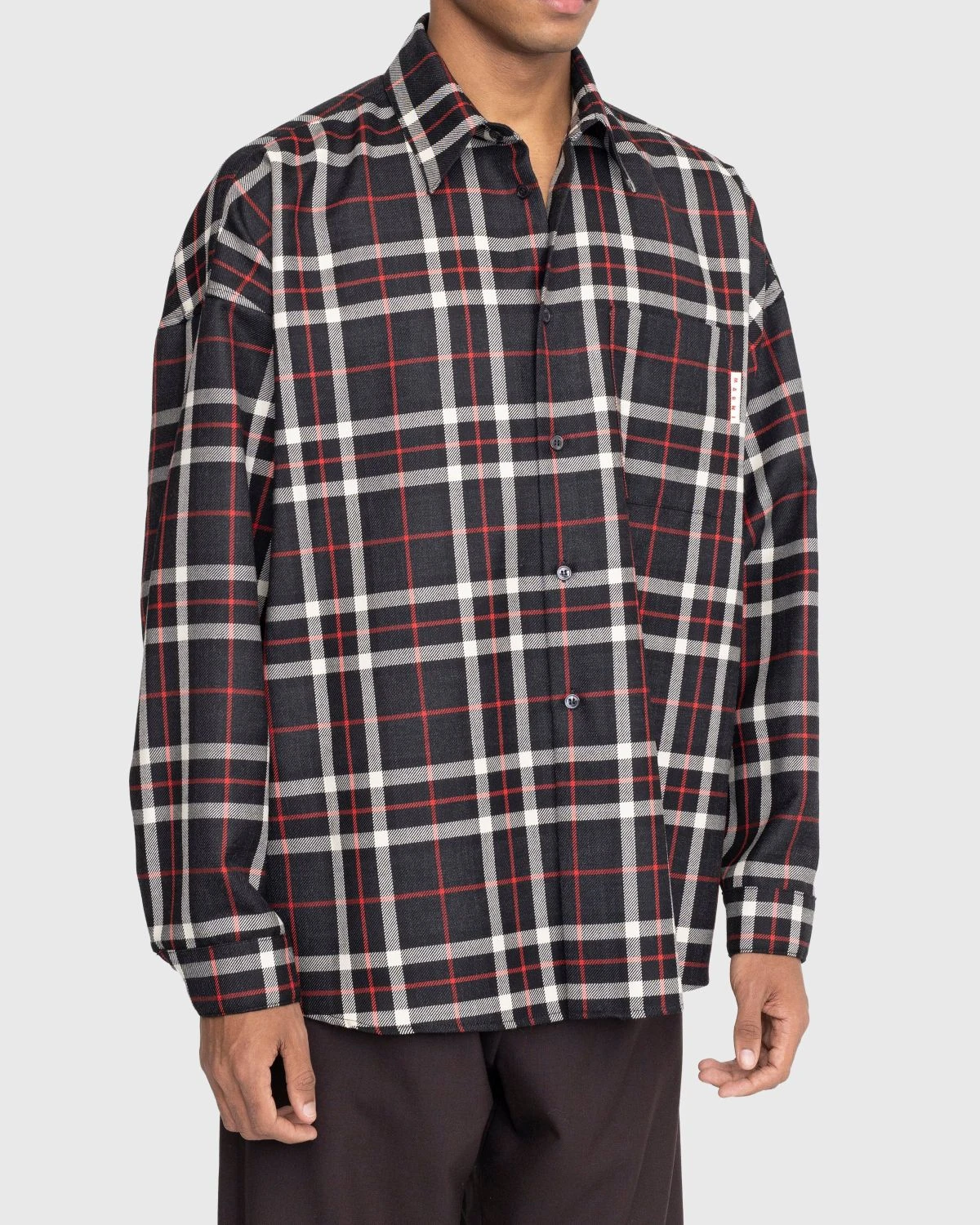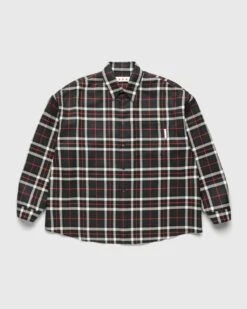 The tartan button-down is a staple shirt style, taken on by Marni for its new seasonal collection. This particular version is produced in a soft virgin wool, showcasing an all-over checked pattern in hues of black, white, and red. Traditional design details include a pointed collar, drop shoulders, and button cuffs, as the style features a single chest pocket branded with a small Marni logo tag. The shirt is cut in a loose fit to make way for layering in the cooler months of the year.