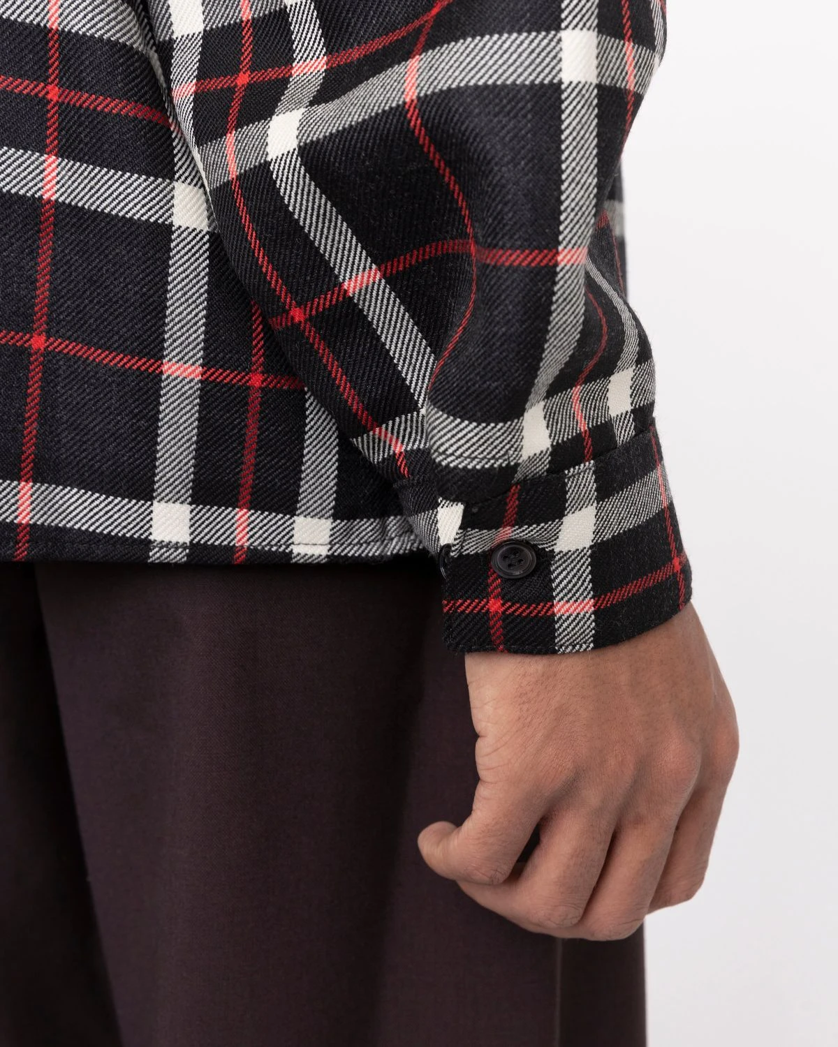 100% virgin wool. Woven. Check pattern. Pointed collar. Drop shoulders. Button closure. Button cuffs. Left chest pocket with Marni logo tag. The model is wearing a size M, and is 185cm / 6” tall with a 98cm / 38.5’ chest. While this piece is from the men’s collection, we shoot on female, male, and non-binary models.
