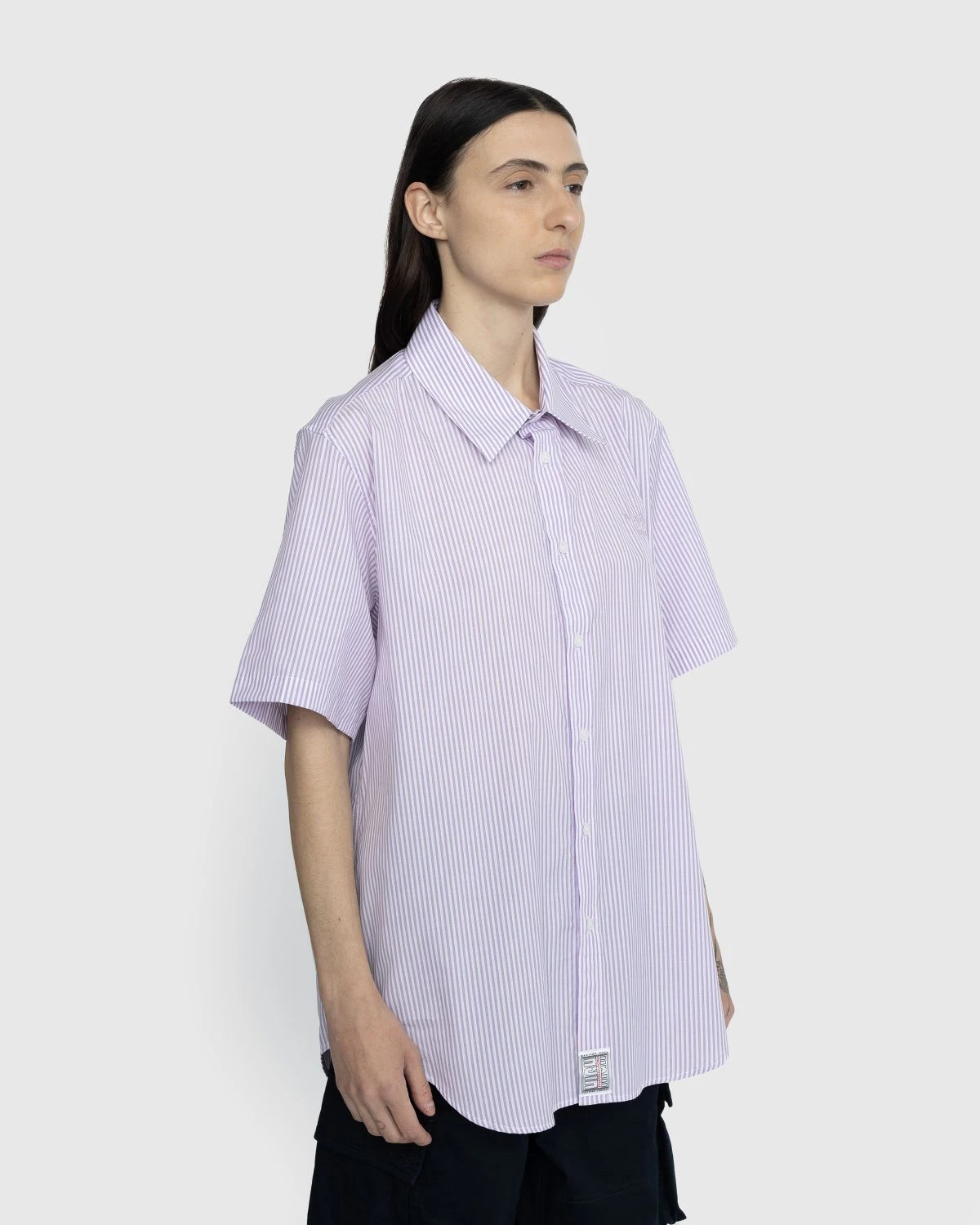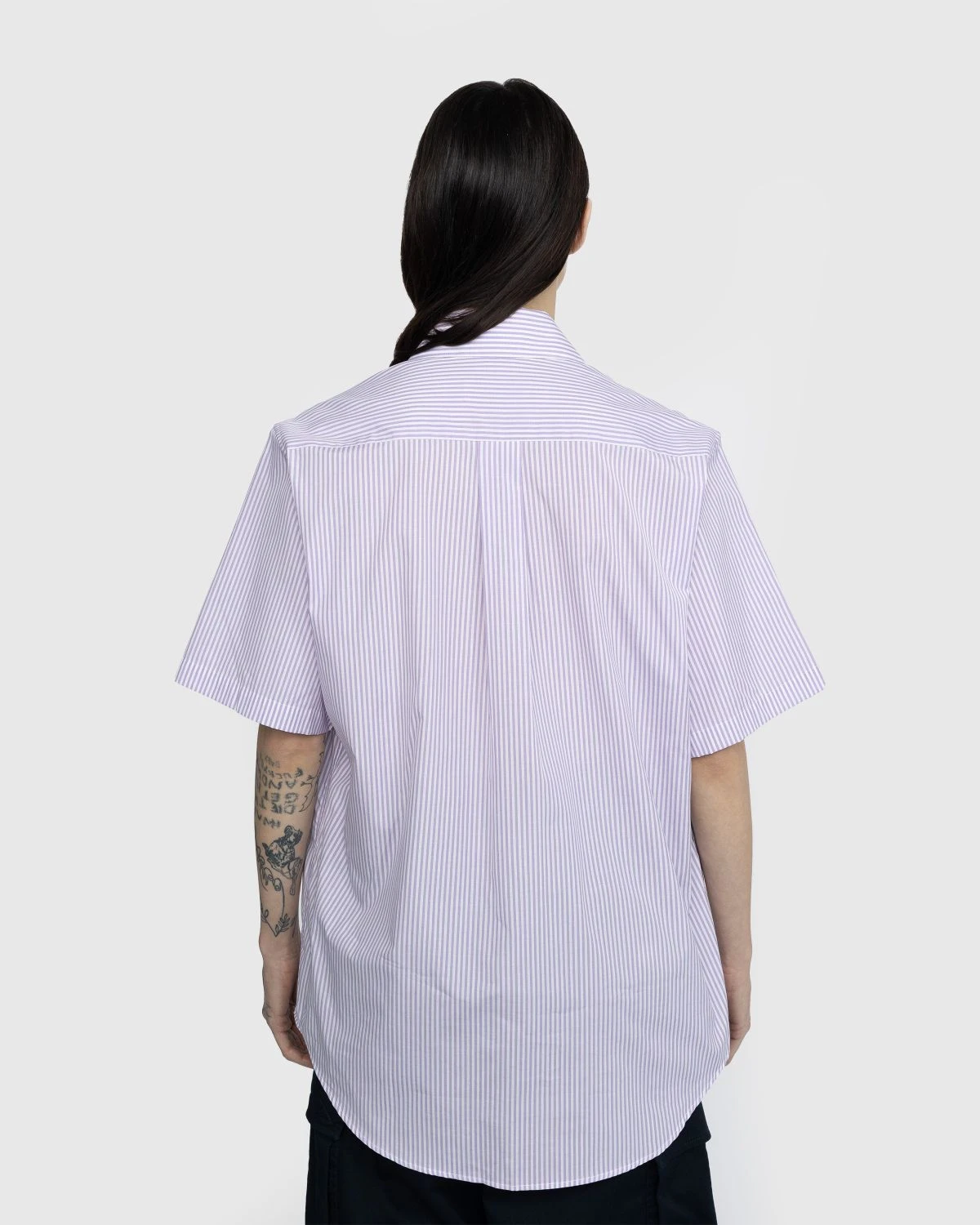 The Classic Shirt is a designer take on the traditional button-down. Showcasing a seasonal all-over stripe motif, the garment is made from 100% cotton, with standard front button closure and a fold down collar. Branding emerges at the chest in the form of an embroidered Martine Rose logo and at the hem by way of a branded tab.