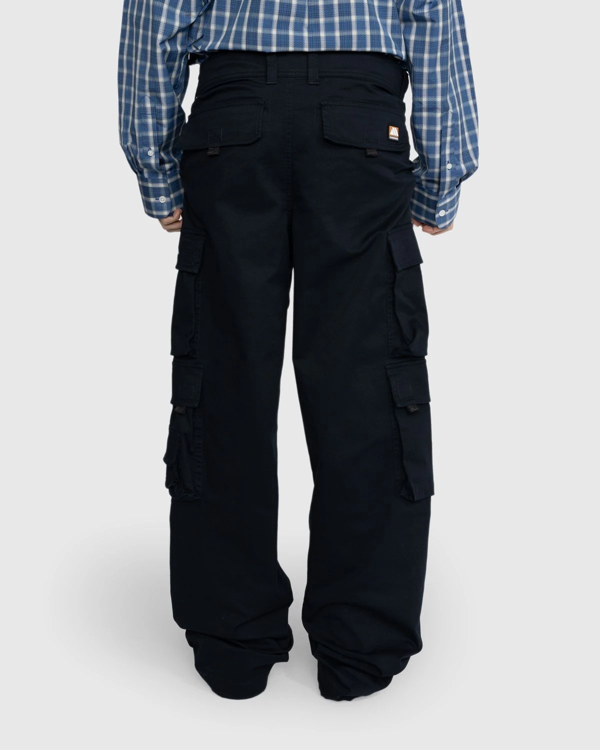 Martine Rose updates the Pulled Cargo Trouser for the new season with a tightened crotch area that creates a pulled effect around the zip. Designed for a loose fit, the pair is predominantly constructed from cotton and outfitted with a slew of pockets including four cargo pockets. Drawstrings are incorporated at the ankles to allow for minor adjustments to styling, as the pant is finished with seasonal branded tabs and logo detailing at the left leg.