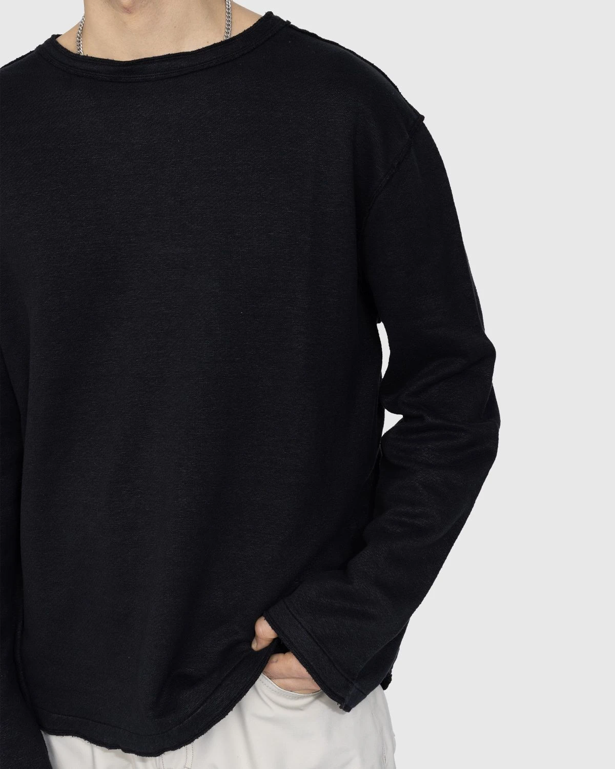 Our Legacy’s Inverted Sweatshirt gets its name from the silhouette’s inverted seams. Produced in a crisp Portuguese hemp and cotton blend fabric, the garment is detailed with raw edges, while also featuring a round collar and straight hem. It is cut in a relaxed, boxy fit for a more comfortable and stylish wear.