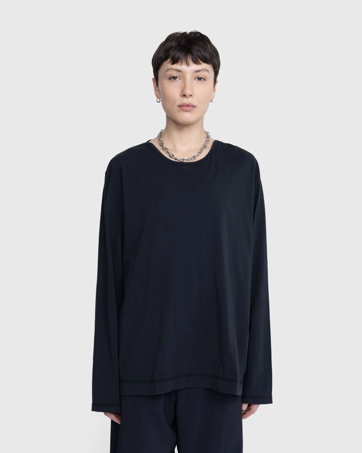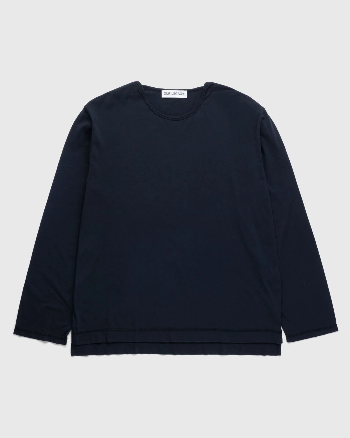 This long-sleeve T-shirt from Our Legacy arrives with a distinct black finish thanks to its pigment-dyed cotton jersey fabric. It has a relaxed, boxy fit with a side seam vent that gives way to a dropped tail. Overlocked seams as well as taped and bound shoulder seams provide subtle final touches to the top thanks to the slightly darker color of the stitching.