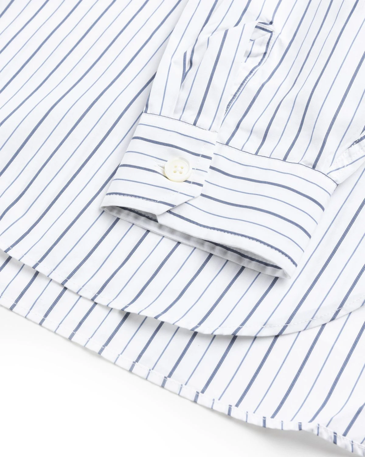 100% cotton. Portuguese fabric. Striped pattern. Button closure. Mother of pearl buttons. High side vents. Dropped tail. Single chest pocket.