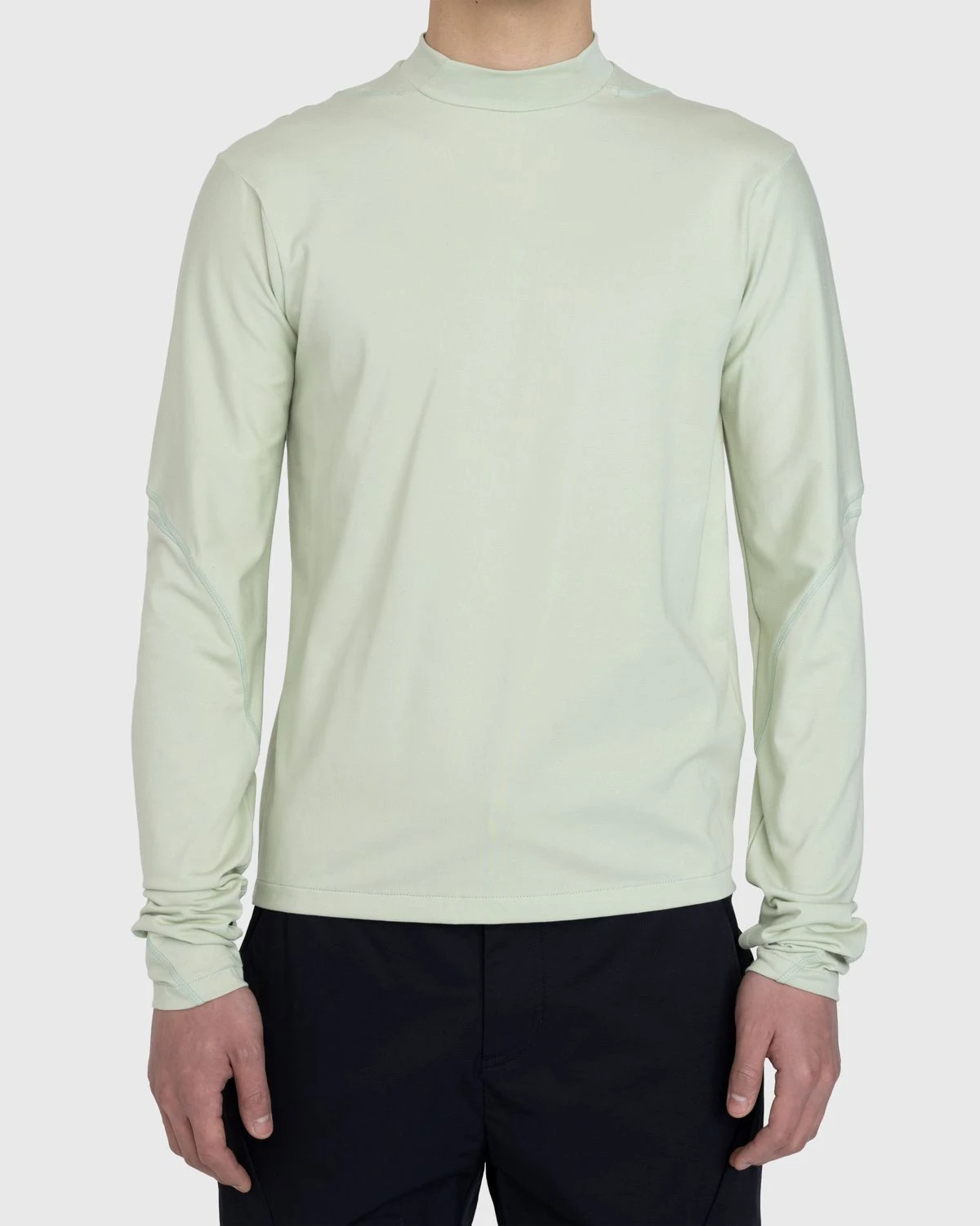 An elevated basic, the 5.0 Longsleeve from Korean brand Post Archive Faction is crafted from a comfortable cotton-polyester blend with a coverstitch line design. Dart detailing at the elbows caters to freedom of movement, while the sleeves are fit with thumbholes for warmth and layered styling. The mock neck style arrives in a light lime colorway that instantly adds a pop of color to your ‘fits.
