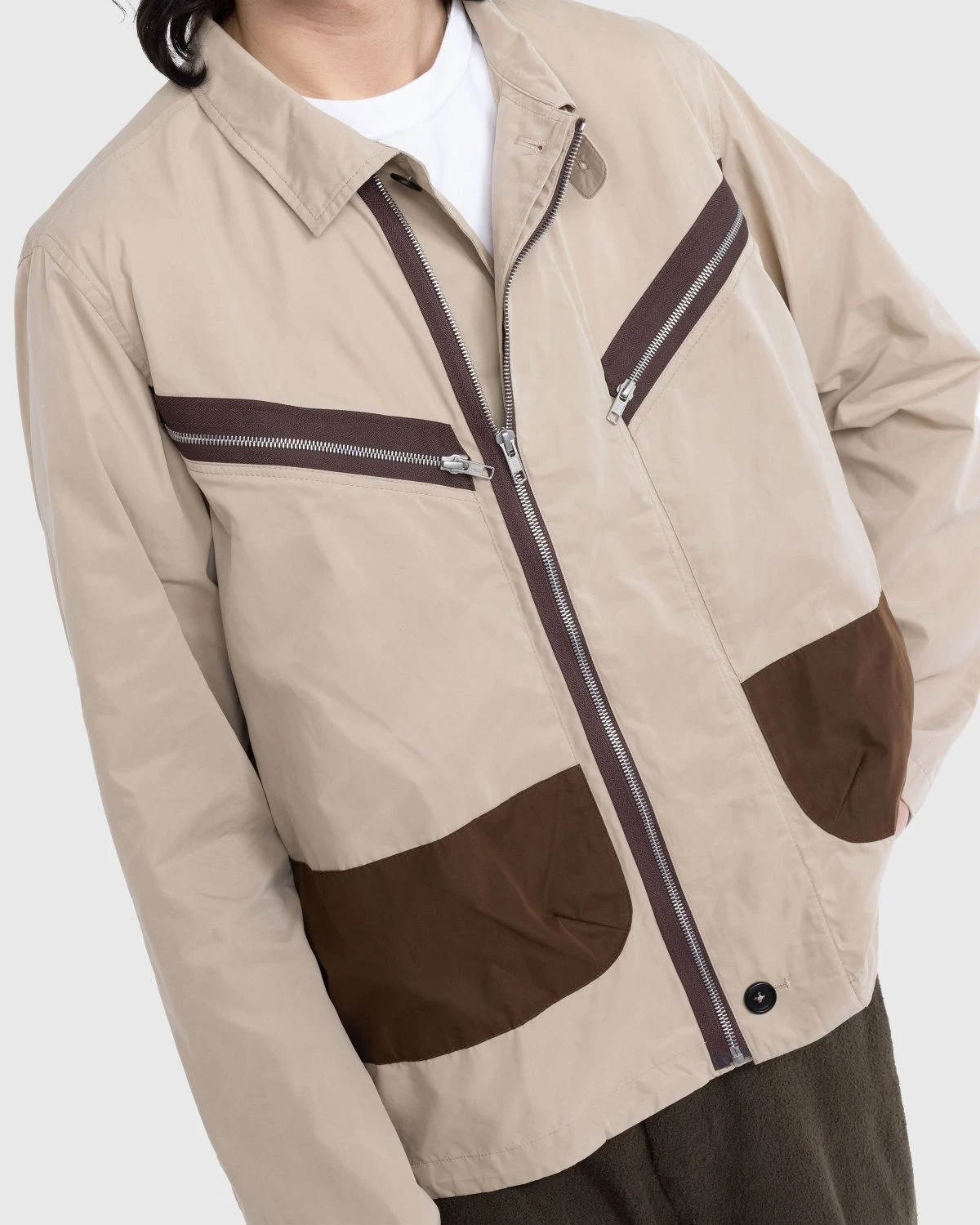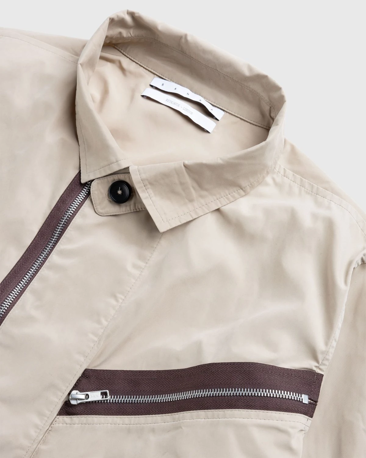The Hulda Jacket is a two-tone style by RANRA, arriving this season in a neutral color scheme for effortless matching. Cut for a standard boxy fit, the outerwear garment features a spread collar with button fastening, front zip closure, and button cuffs, with eyelet vents at the underarms to increase breathability. Zip pockets are incorporated at the chest to provide space for securely carrying small essentials.