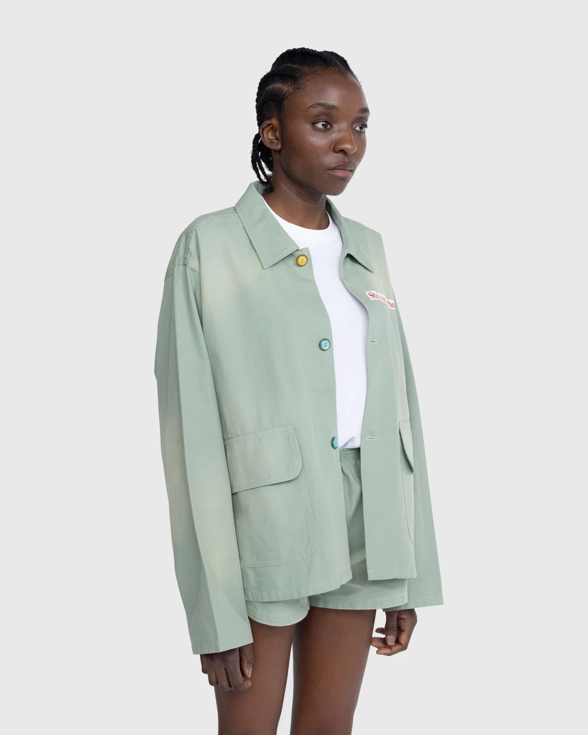 Stockholm Surfboard Club updates the classic coach jacket, executing the staple outerwear item in lightweight cotton canvas. It arrives in a neutral sage colorway with bright contrasting buttons lined down the center. Large flap pockets are incorporated onto the front, as the style is finished with a woven logo label at the chest.