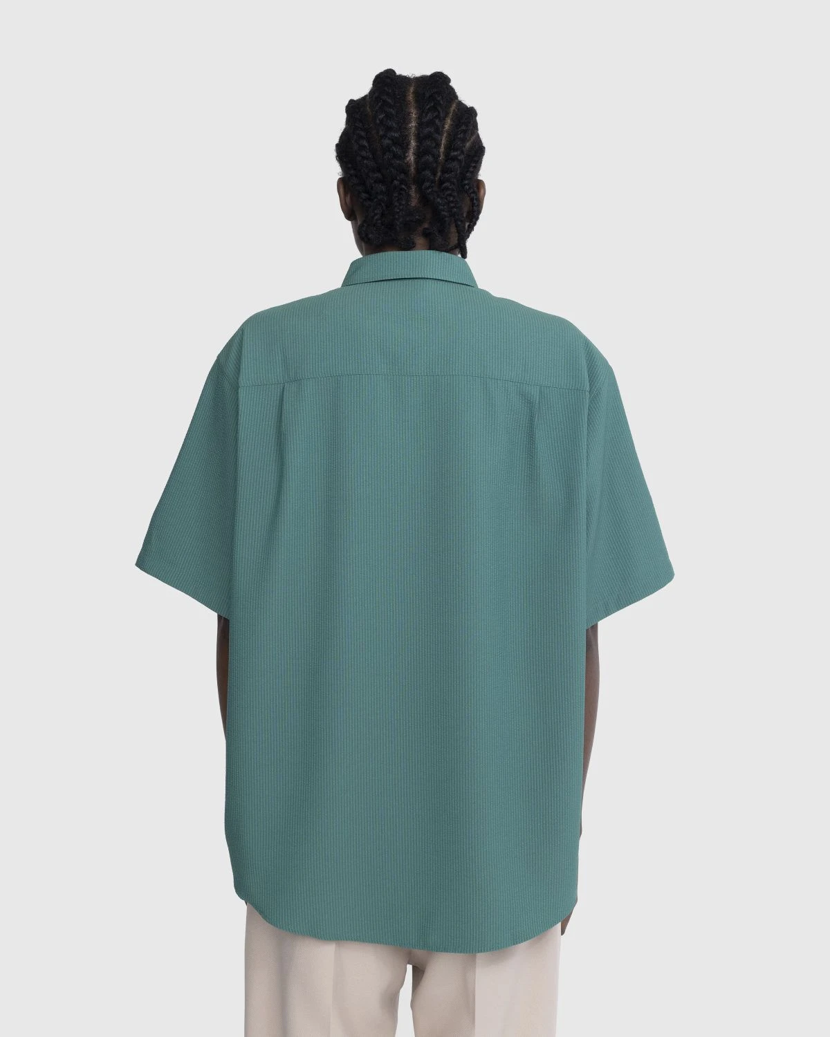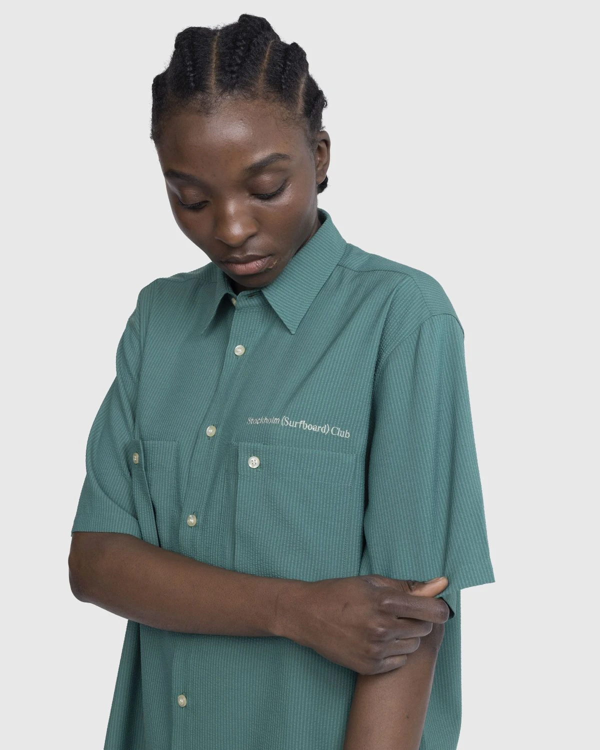 Stockholm Surfboard Club updates seersucker styles for the warm weather season, with pieces like this short-sleeve button-up. Produced in polyester, the garment features a subtle striped pattern and two buttoned pockets at the chest. An embroidered logo is incorporated onto the front to minimally brand the silhouette.