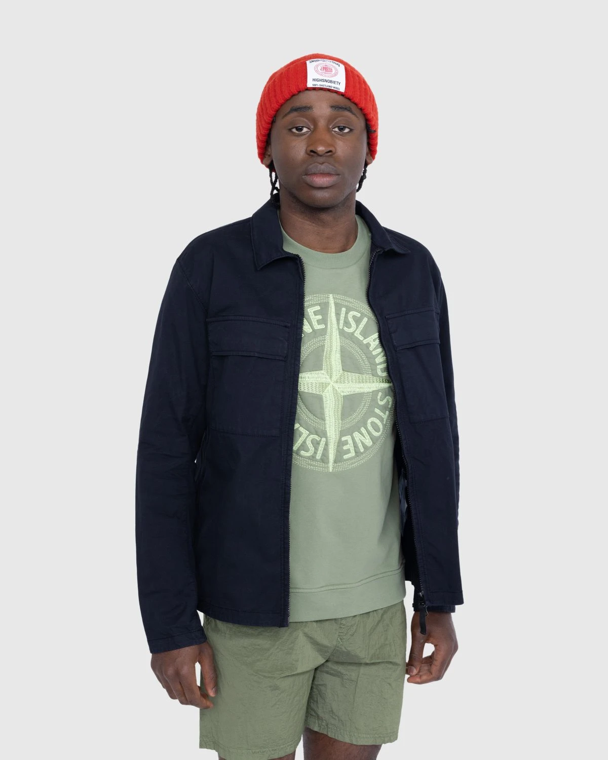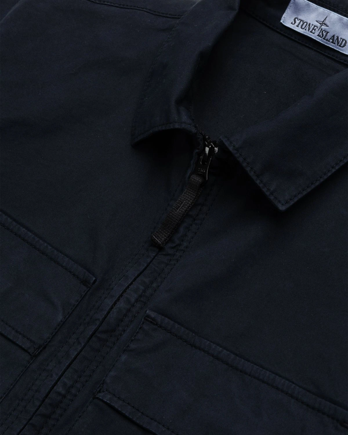 97% Cotton, 3% Elastane / Spandex. Garment-dyed. Two patch pockets on chest, with a fixed flap. Tightening snap at cuffs. Two-way zipper fastening. Stone Island badge on the left sleeve.