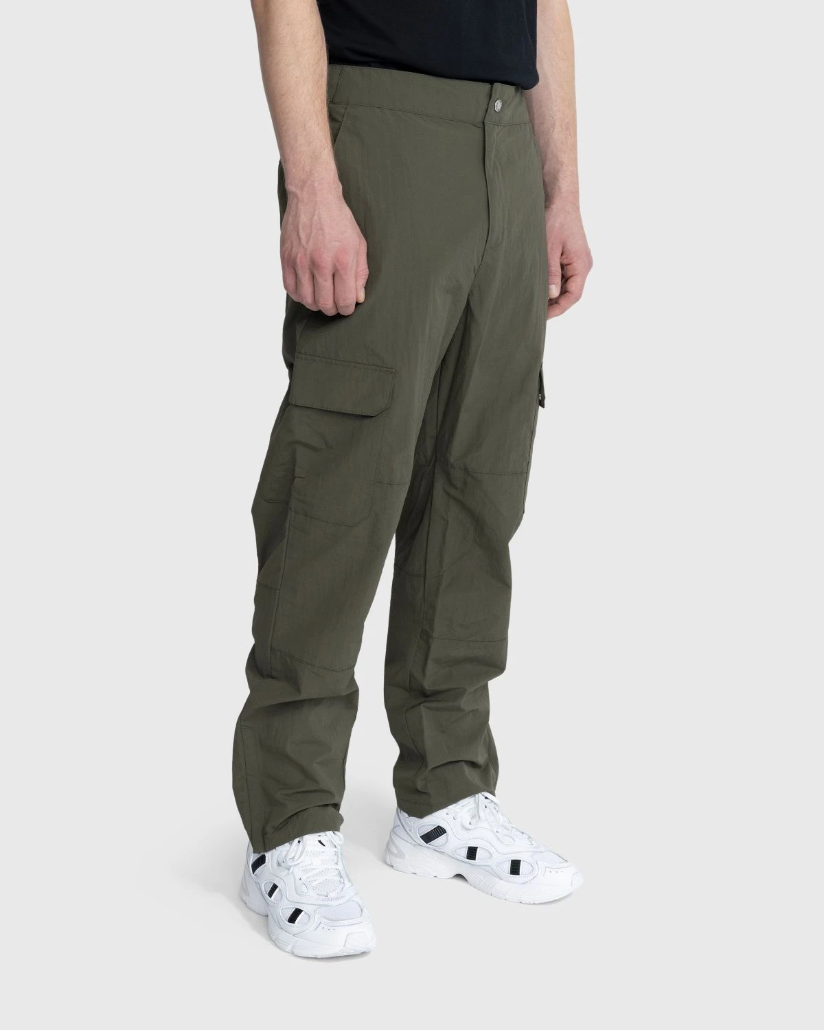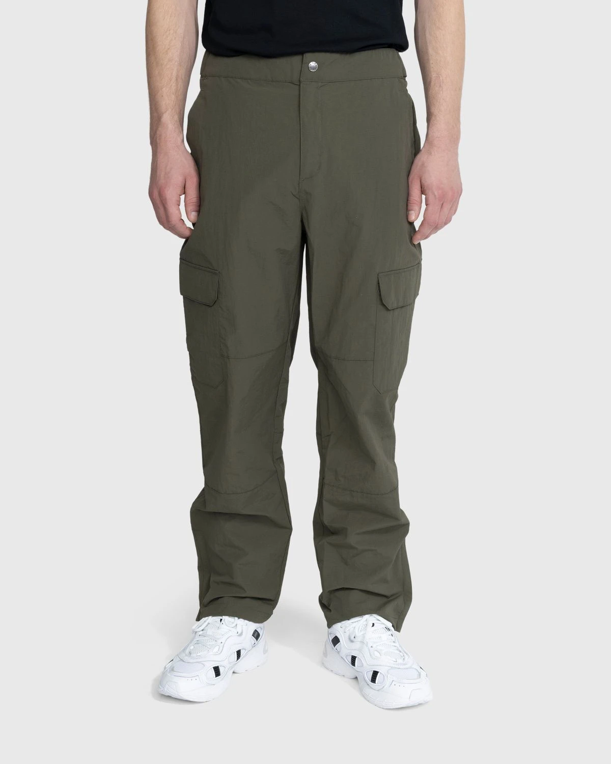 76% recycled nylon. 24% organic cotton. Non-PFC durable water-repellent finish. Highly wind-resistant WindWall fabric. Waistband with a clean-finish front and partial elastic back. Zip fly with snap closure. Side zip at the ankles. Side entry hand pockets. Cargo pockets with hidden snap closure at the thighs. Secure zip back pocket. Oversized logo at the right calf.