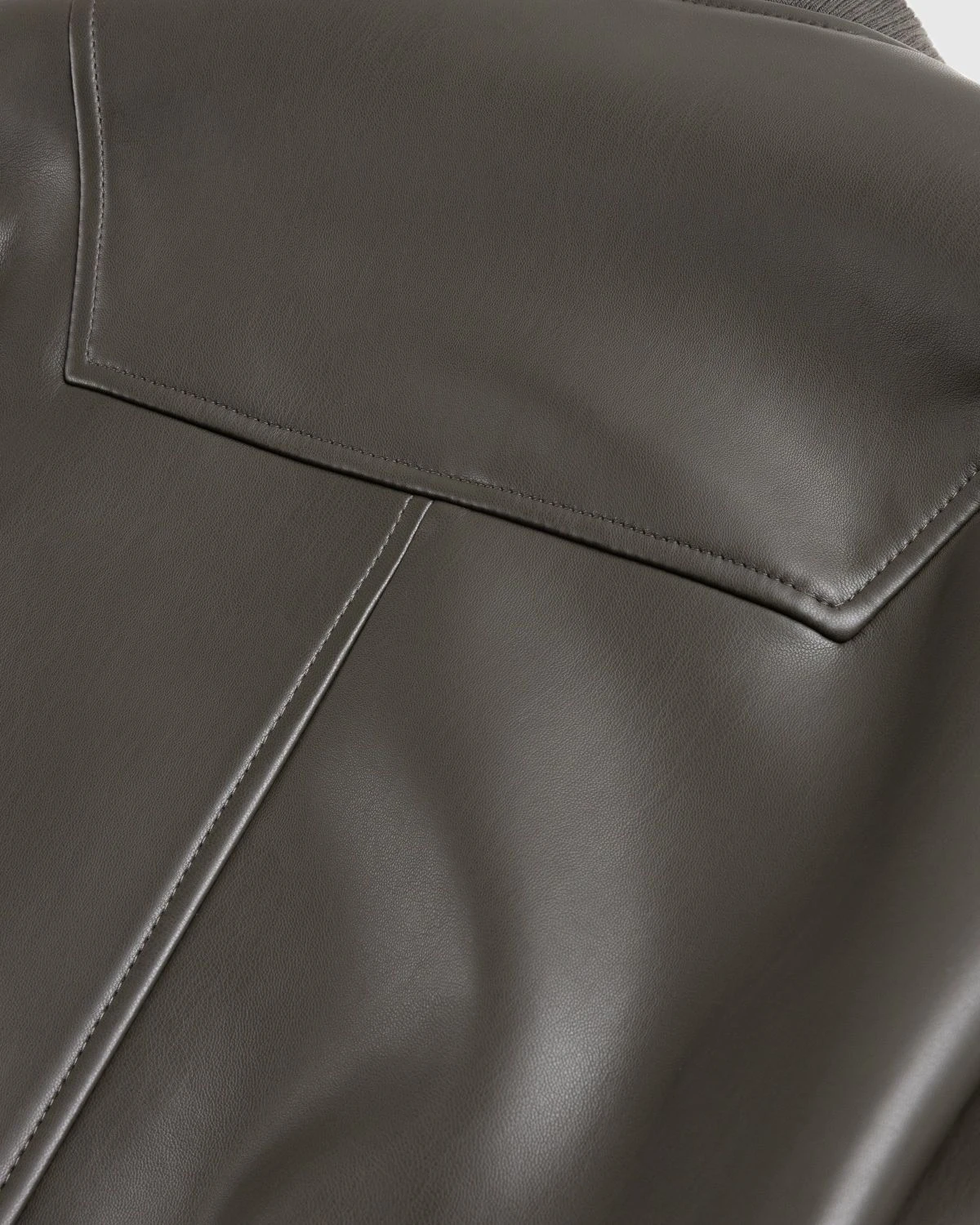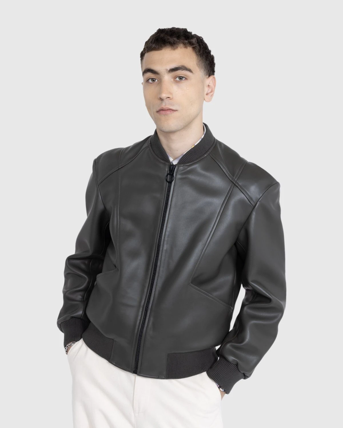 An elevated take on the traditional leather jacket, this Trussardi outerwear style is a faux leather alternative predominantly constructed from polyester. It arrives this season in a dark olive colorway, with full-zip closure that has a puller inspired by the Levriero circular logo. Additional details include rib knit trims at the collar, cuffs, and hem, and front hand pockets.
