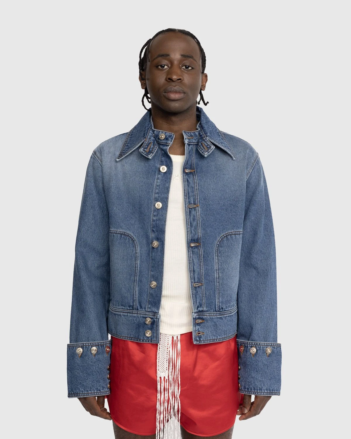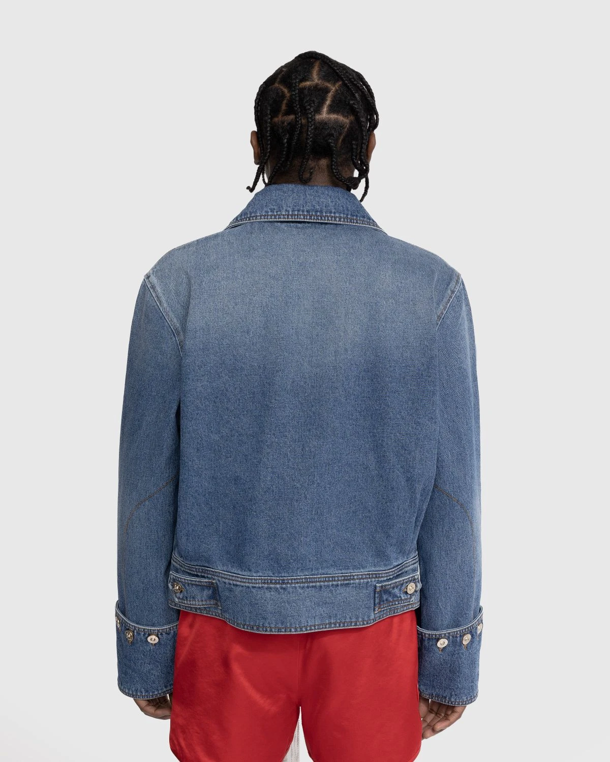 The Delta is a contemporary update to the classic denim jacket. It is made from non-stretch organic cotton denim with a noticeable faded effect. A throat guard is incorporated at the spread collar, while the button barrel cuffs are detachable. Additional adjustments can be made by way of button tabs at the back hem. The style is detailed with logo-engraved silver-tone hardware.