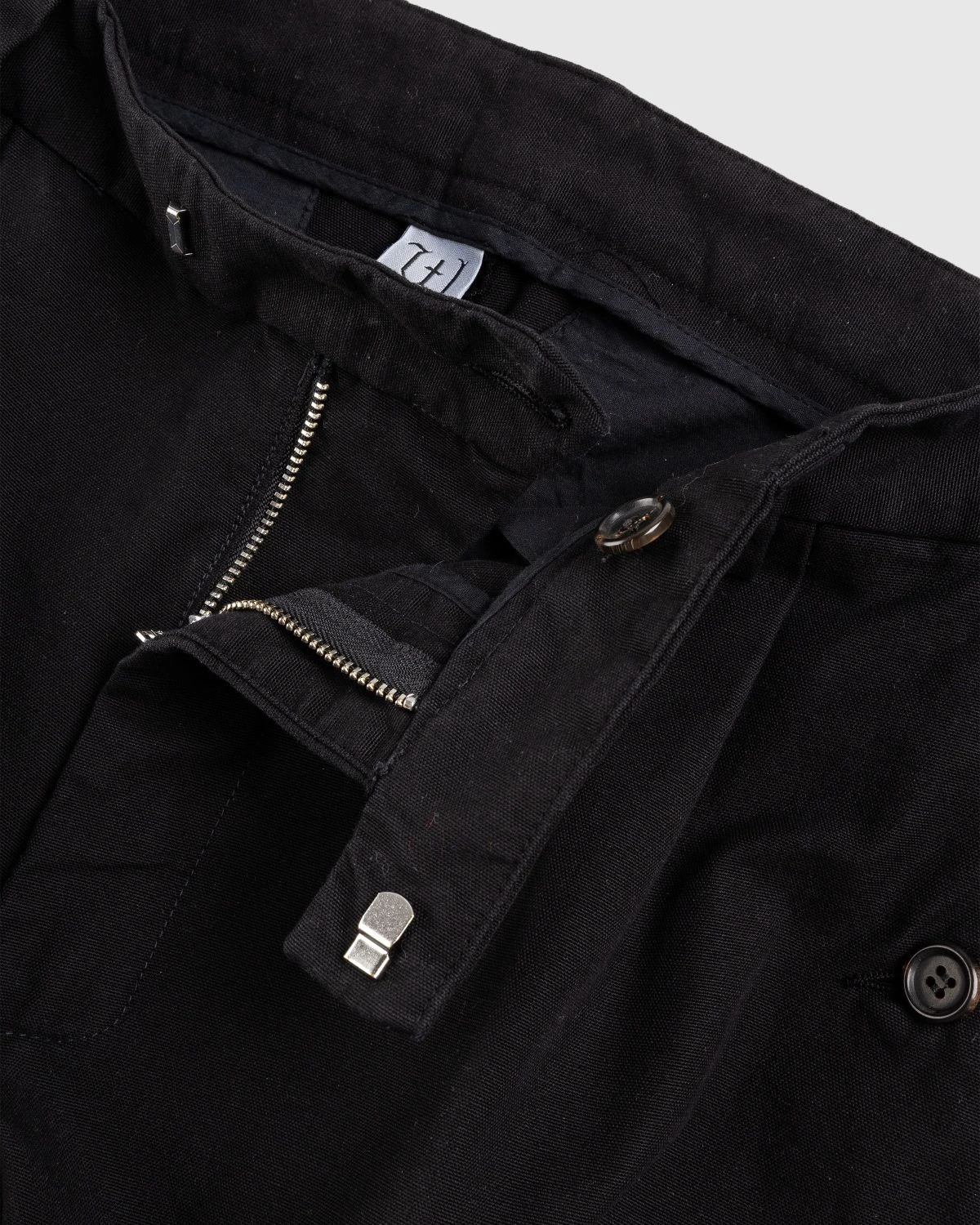 The Bottom Closure Trouser is a cotton canvas pant style from Winnie’s latest seasonal collection. It arrives in a versatile black colorway for effortless matching, detailed with a pleated front and button tabs at the ankles cuffs. Concealed fastening creates a more streamlined look, as the pair is outfitted with button side pockets as well as two back pockets.